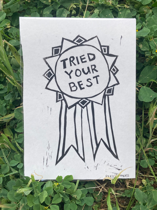 "Tried Your Best" Award Lino Print